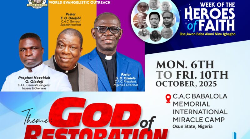 Read MoreChrist Apostolic Church Set to Hold 2025 Heroes of Faith Week at Babalola Miracle Camp The Christ Apostolic Church (CAC)