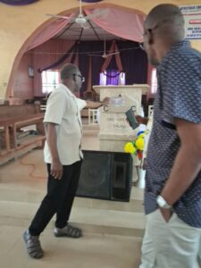 Upon arriving in Eruku, the President and his team were warmly received by the elders of the church, and the young church member who had been handling the livestream on the day of the attack. Their first stop was the church auditorium where the violence happened, a sight described as devastating and difficult to behold.
