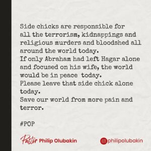 The Breakdown of Covenant: Just as marriage is a covenant, citizenship is a covenant. Adultery shatters the marital covenant with betrayal. The “side-chick mentality”, the pursuit of selfish gains while ignoring communal duty, shatters the social covenant. It says, “My pleasure matters more than your pain.”