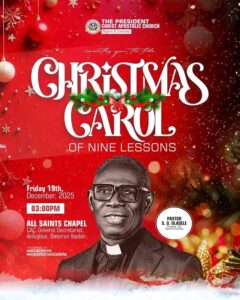 The Christ Apostolic Church (Nigeria & Overseas) invites members, families, and the general public to a glorious celebration of the birth of Jesus Christ at its Christmas Carol of Nine Lessons.