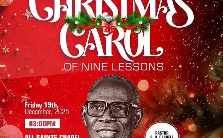 The program will take place on Friday, December 19, 2025, beginning at 3:00 PM, at the All Saints Chapel, CAC General Secretariat, Anlugbua, Basorun, Ibadan.